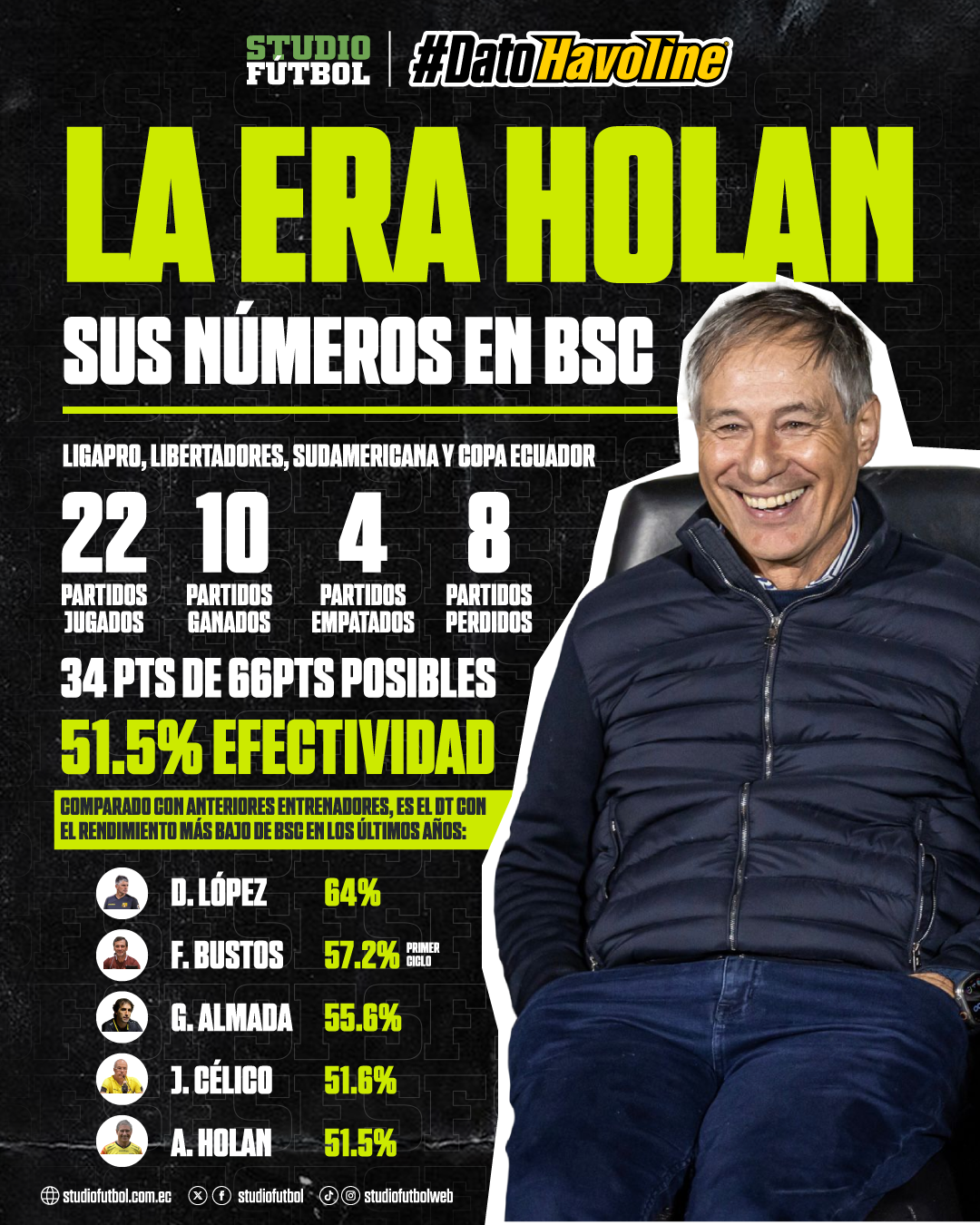 Ariel Holan ya no es más el entrenador del Barcelona SC y deja al equipo amarillo sumido en dudas en lo deportivo ya que están en un rendimiento en caída libre y los números lo muestran.